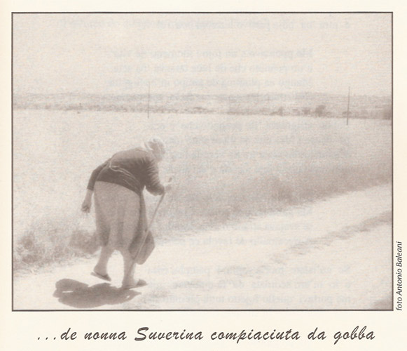 U fazzoletto proteggìa a saggezza rugosa de nonna Suverina compiaciuta da gobba. L’anema bianga come a strada porverosa. A sporta a scarchi je profumava de robba.