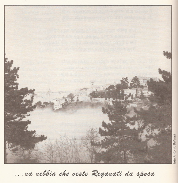 Copre u monno stasera un lezziero mantello. C’è na nebbia che rveste Reganati da sposa. Ma perché quella vò parìa tutto più bello? Co’ pò èsse nu sò ma è gambiato quarcosa! |