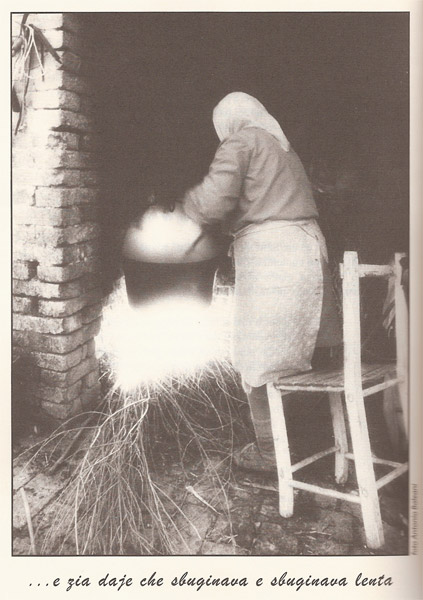 E noartri ce mettiàmo lì zitti senza dà rogne. Guardiàmo cuntenti a zia che sbuginava lenta co’ lla farina gialla ‘ncrastata sotta a l’ógne tutto u monno nostro fatto de pulenta!!!!!!!