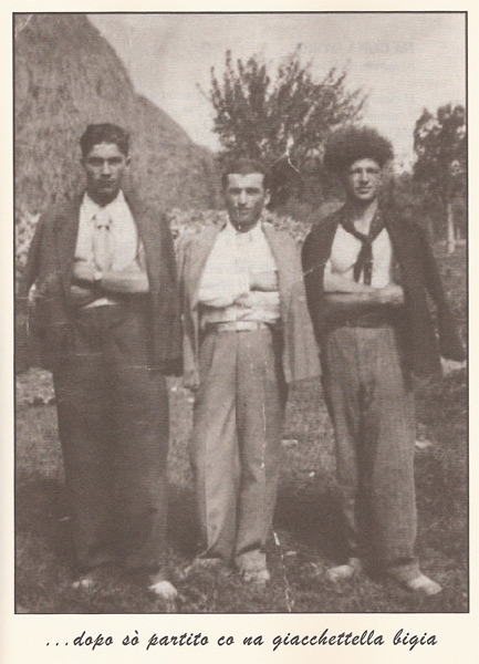 Dopo so’ partito co na giacchettella bigia verso llu monno c’ avìo sempre nsognato. ‘Na curdèlla legata l’intonno a valligia e lassavo Reganati ntr’un pianto ffogato.