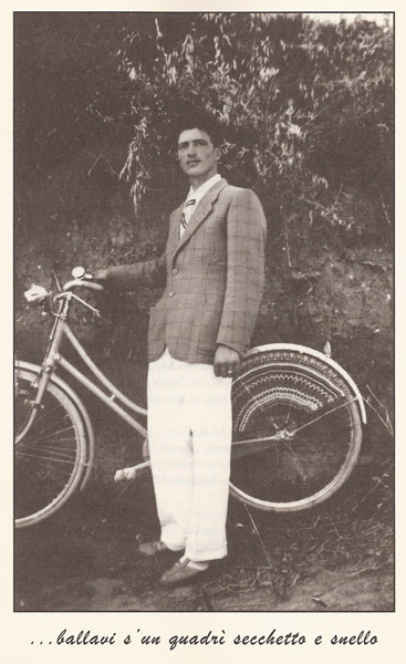 Parìi propio un principì e quant’eri bello quanno che te ‘ncriccavi pa Messa i frati! Trillavi s’ un quadrì secchetto e snello co’ lli du baffetti fórti e ben squadrati!