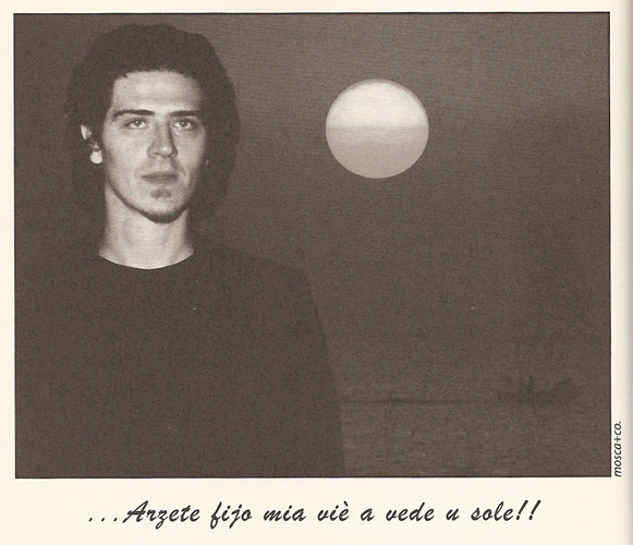Arzete fijo mia viè a vede u sole!! Ancó poi guardallo co l’occhi da bardascio. Lla luce a diciott’anni ancó non te fà dòle. Dopo te ‘vverto che fà de n’erba un fascio!